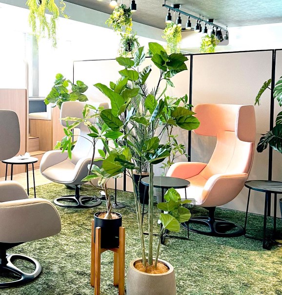 最近のフェイクグリーンは、本物と遜色もないため、清涼感のある緑を室内に取り入れることで、空間がみずみずしく心地よくなります。手軽さが売りです。