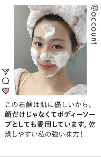 - 今までの洗顔料と比べてツッパリ感がなく、化粧水をつけるのを忘れてしまいます。